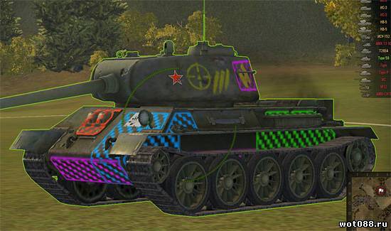 Цветные шкурки с зонами пробития для World of Tanks 0.8.11
